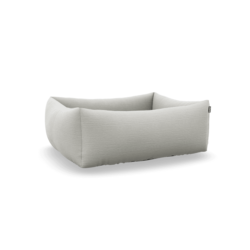 Et trygt og tilbaketrukket hvilested med en stilren følelse som helt enkelt går godt sammen med øvrig innredning. Fyllet er laget av myk silikonfiber som til stor glede for eier er vaskbart. Livet som hund ble akkurat nå enda bedre.