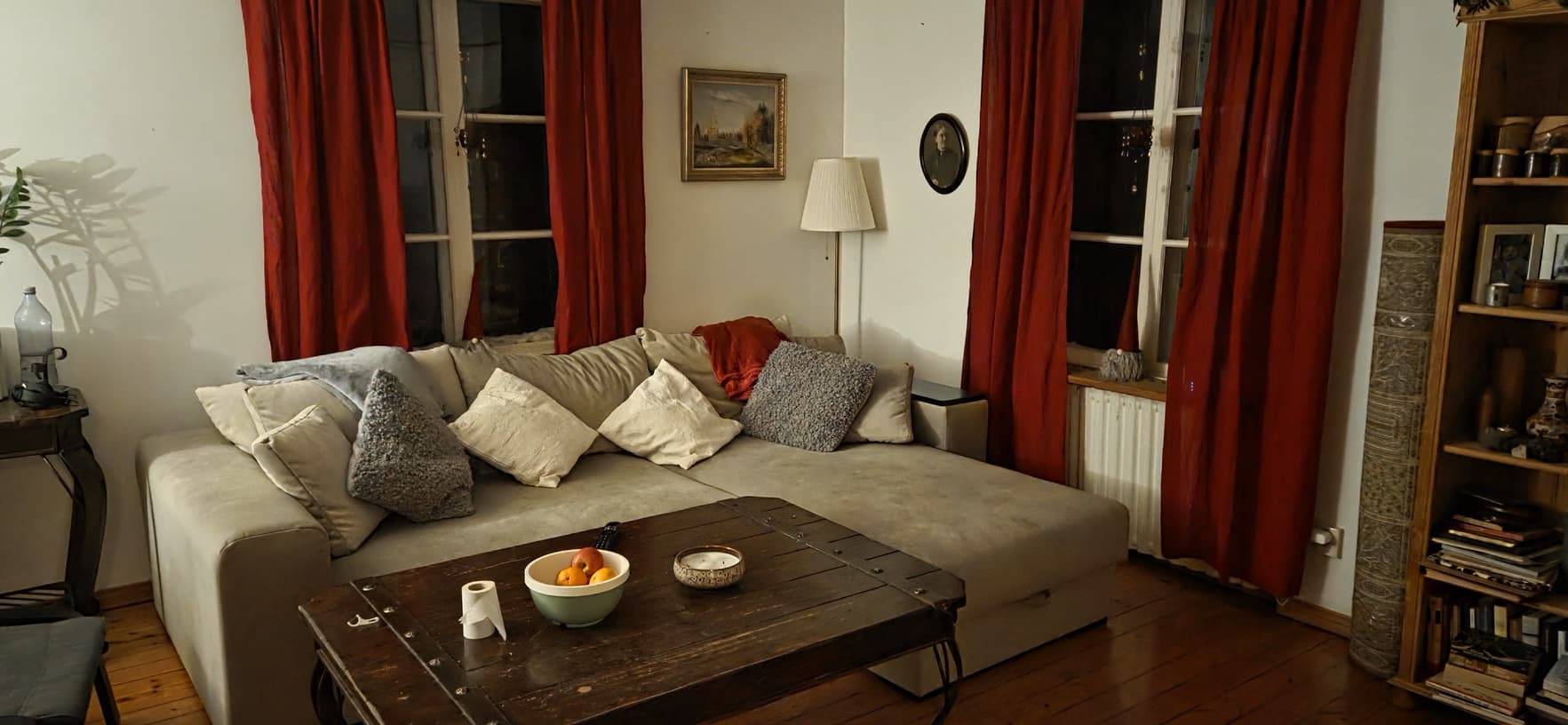 Veldig fin, den passer så godt til sofaen som er i samme stoff. Bra med oppbevaring under. Vi er så fornøyde med fotskammelen vår. 🌸