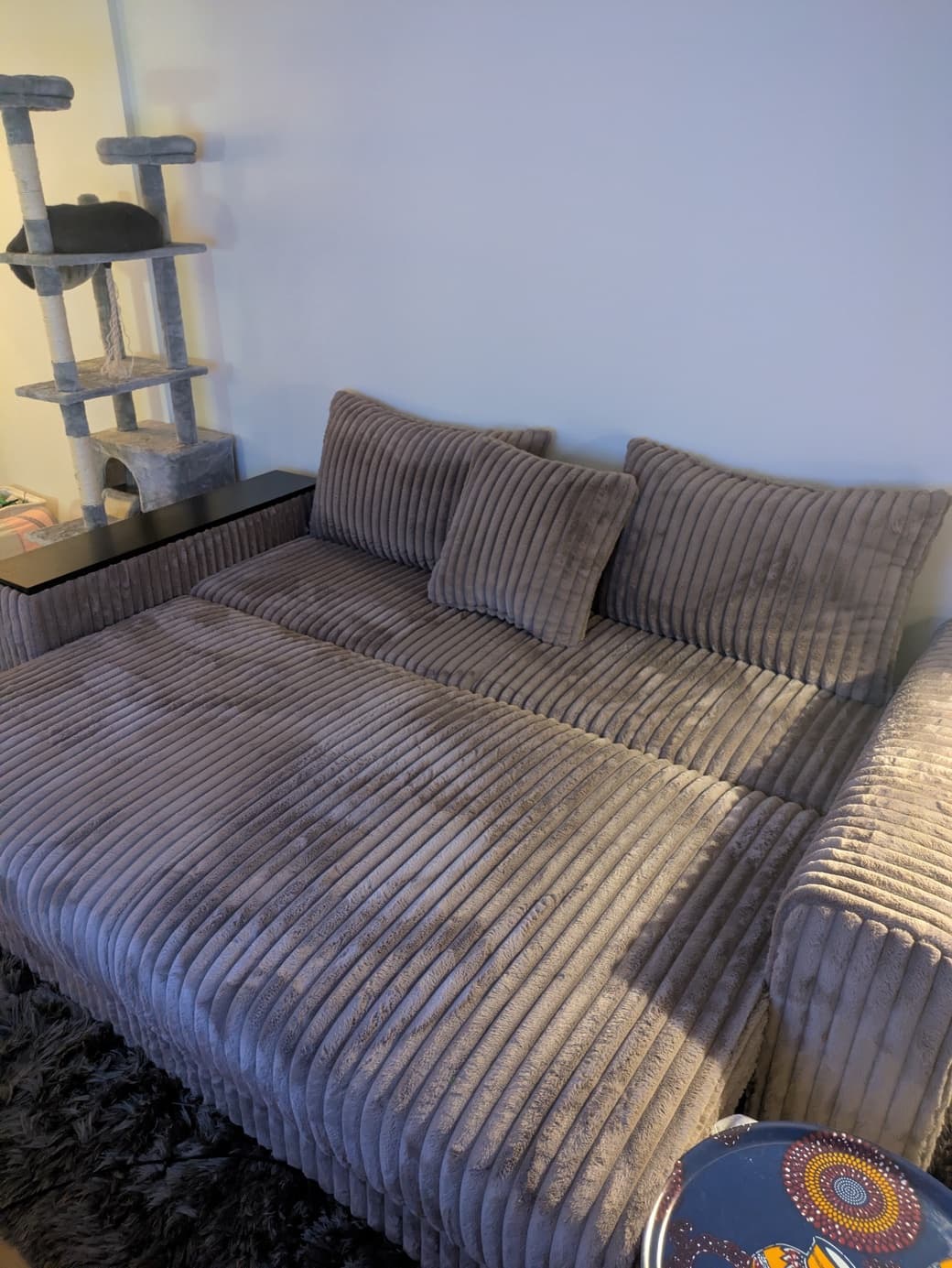 Hej Alva! Åh, vilka underbara bilder! 😻 Ser ut som att katten också trivs i soffan 🥰 Så kul att leveransen till Örebro gick smidigt och att soffan kom tidigare än beräknat! 🤩 Vito-tyget är verkligen så fluffigt och mysigt, det är härligt att höra att ni trivs så bra med det. Färgen Mullvad passar verkligen fint hemma hos er! Underbart att soffan fungerar lika bra att sitta i som att sova i. Tack snälla för det fina omdömet, det betyder så mycket för oss! 💛 Bästa hälsningar, Nils 🌻