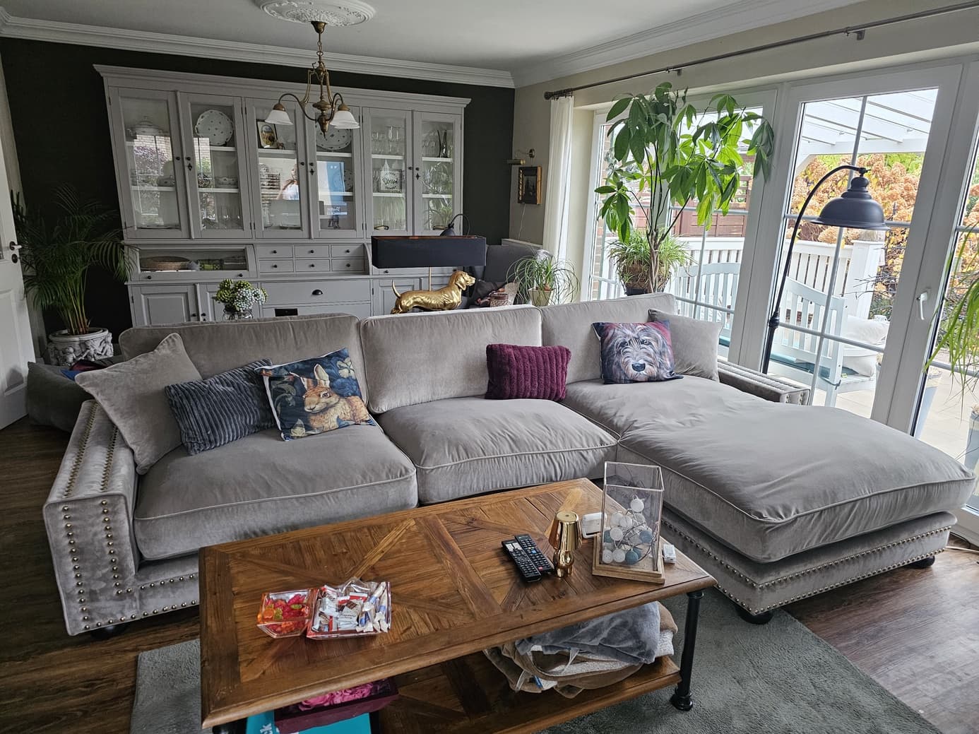 Vi er utrolig fornøyde med sofaen. Den er akkurat slik vi forestilte oss den. Fantastisk kvalitet. Nydelig fløyelsstoff. Monteringen var enkel. Leveringen med DHL var også perfekt ... selv før avtalt leveringsdato. Jeg kan anbefale den på det sterkeste.
