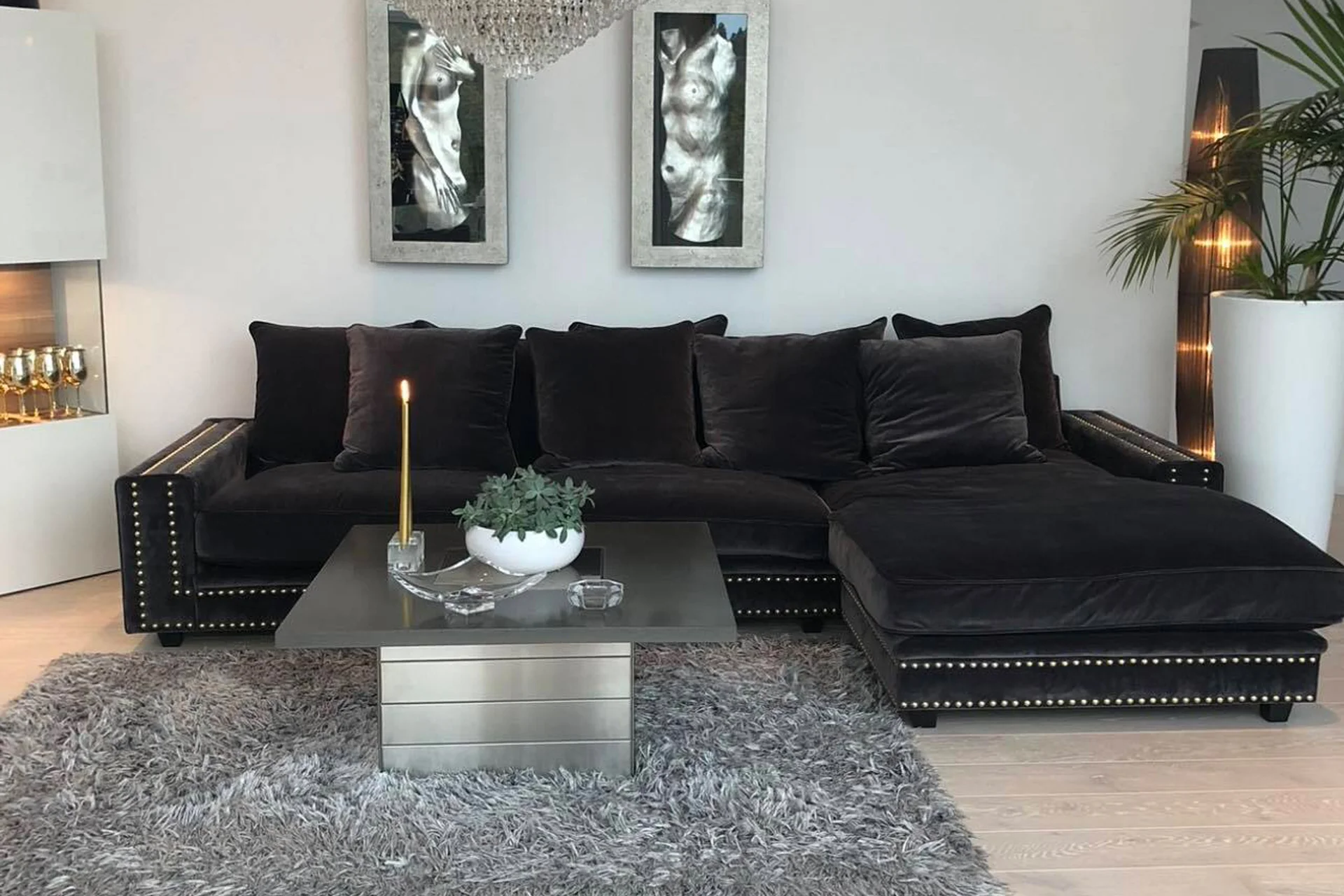 Du har begynt å flørte med nye sofaer og med Elefanten får du muligheten til å designe din drømmepartner. Velg mellom fløyel, lin, polyester og skinn, og med eller uten stifter. Du velger utseendet på putene også, du kan velge mellom små konvoluttputer "Chill" eller store ryggputer "Casual". Resultatet blir en stor, dyp divansofa eller en rak med fluffy dunfyll man aldri slutter å være nyforelsket i.