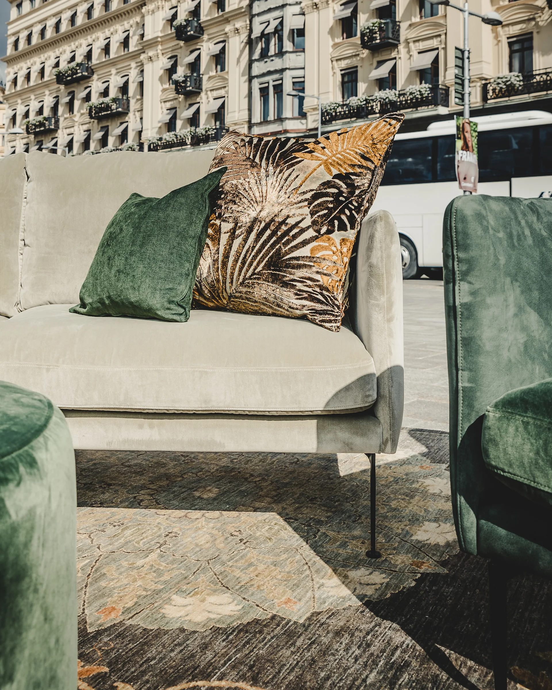 Hei Mona! Så hyggelig å høre at du liker fargen og stoffet. Jeg må si at det passer så godt inn i hjemmet ditt. For et fint bilde 😻💚 Jeg forstår at det hadde vært praktisk å hatt vendbare puter. Flamingoen har et annet fyll i putene, noe som betyr at de dessverre ikke er vendbare 😇 Takk igjen for at du tok deg tid til å skrive 🤗 Med vennlig hilsen, Nils 🌻