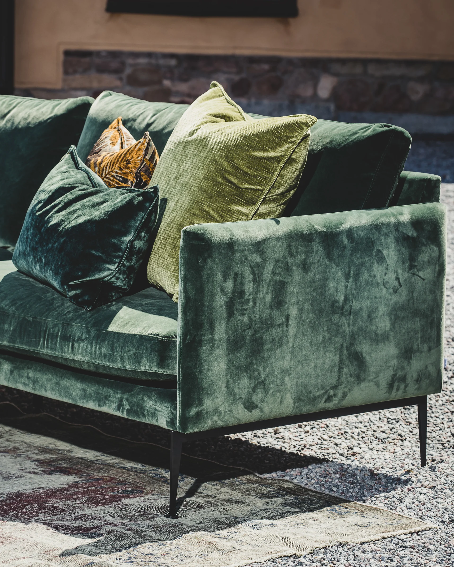 Hei Mona! Så hyggelig å høre at du liker fargen og stoffet. Jeg må si at det passer så godt inn i hjemmet ditt. For et fint bilde 😻💚 Jeg forstår at det hadde vært praktisk å hatt vendbare puter. Flamingoen har et annet fyll i putene, noe som betyr at de dessverre ikke er vendbare 😇 Takk igjen for at du tok deg tid til å skrive 🤗 Med vennlig hilsen, Nils 🌻