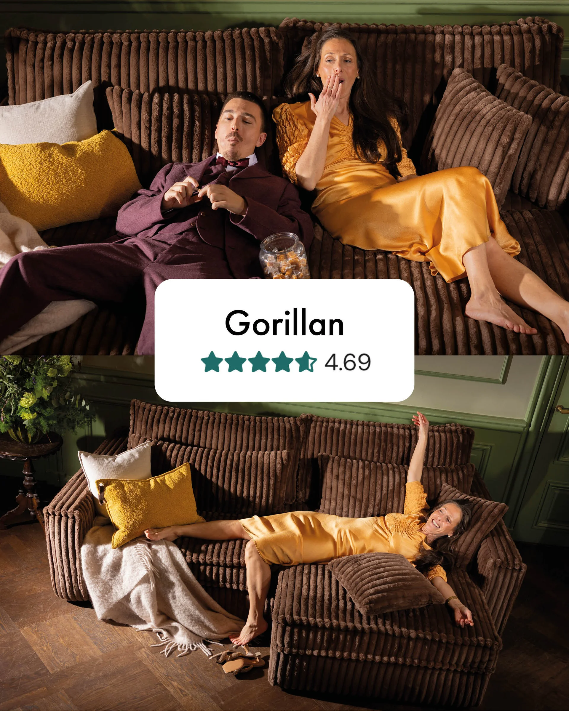 Foruten å være hjemmets trygge midtpunkt, er den en ekte forvandlingskunstner som kan gjøres om til en rett sofa, en sjeselongsofa eller en romslig 140x200cm eller 160x210cm seng. Takket være denne funksjonaliteten er Gorillan den eneste av våre sofaer som kan skryte av å være tre møbler i ett. Selvfølgelig tilbyr Gorillan også praktisk oppbevaring for sengetøy under setet. Og tilpasningsmulighetene stopper ikke der, med et bredt utvalg av tekstiler, inkludert fløyel, kordfløyel og herlig fluffy stoff, kan du skape en Gorilla i 100 % din stil. Så hvis du er klar for en fleksibel, stilig og utrolig koselig sofa, kan vi love at Gorillan vil berike hverdagen både for deg og dine gjester.