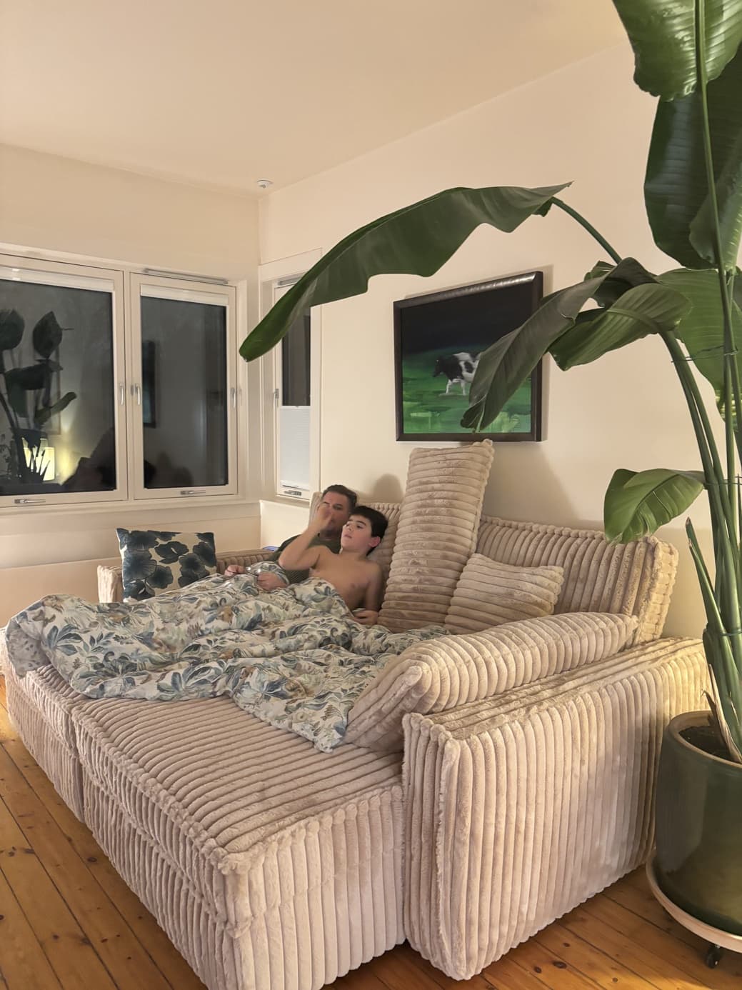 Vi har blitt så glad i vår gorila sofaen! Den har blitt en ekstra familiemedlem. Den er myk, god, varm, behagelig, stille, og liker og se på filmer og serier med oss! Den liker også overnattingsbesøk!