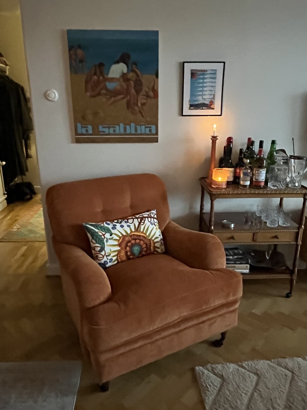 Så fornøyd med lenestolen min. Stoffet passet perfekt til det jeg lette etter.