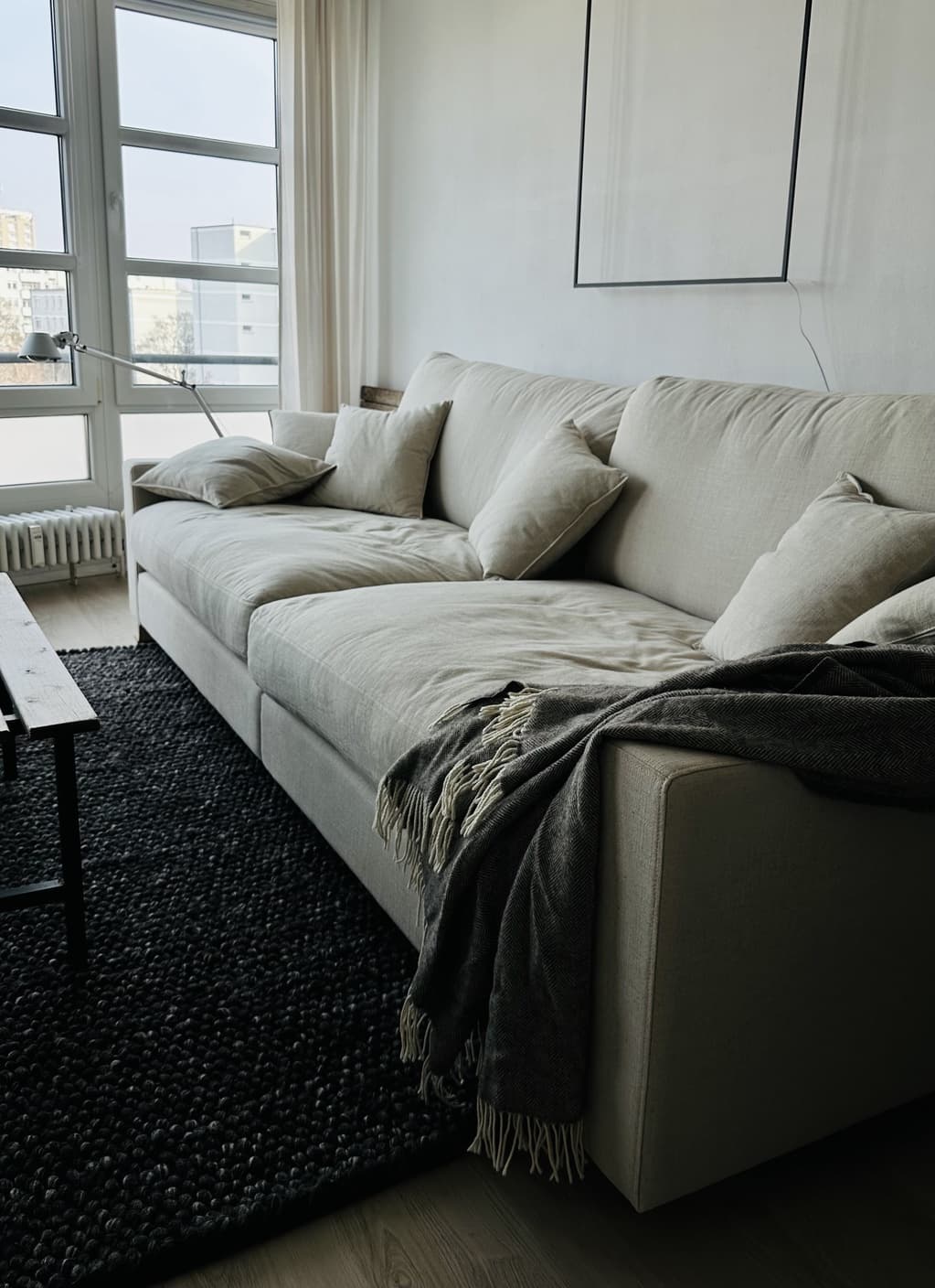 5 stjerner – God kvalitet og høy sittekomfort Valen XL-sofaen ble levert i mars 2026. Utførelsen er solid: en solid treramme, rene sømmer og en stabil konstruksjon. I tillegg til de inkluderte bena kan andre ben festes (f.eks. høyere for en robotstøvsuger). Åtte separate M8-gjengehull er allerede tilgjengelige for dette formålet! Setedybden er generøs, putene er fylt med dunfjær og gir en behagelig, myk sittekomfort. Det valgte Sand-stoffet ser ut som et høykvalitetsprodukt, føles behagelig å ta på og passer godt i stuen. Leveringen var i tide. Alt i alt et sterkt anbefalt kjøp for alle som leter etter en dyp og veldig komfortabel sofa.