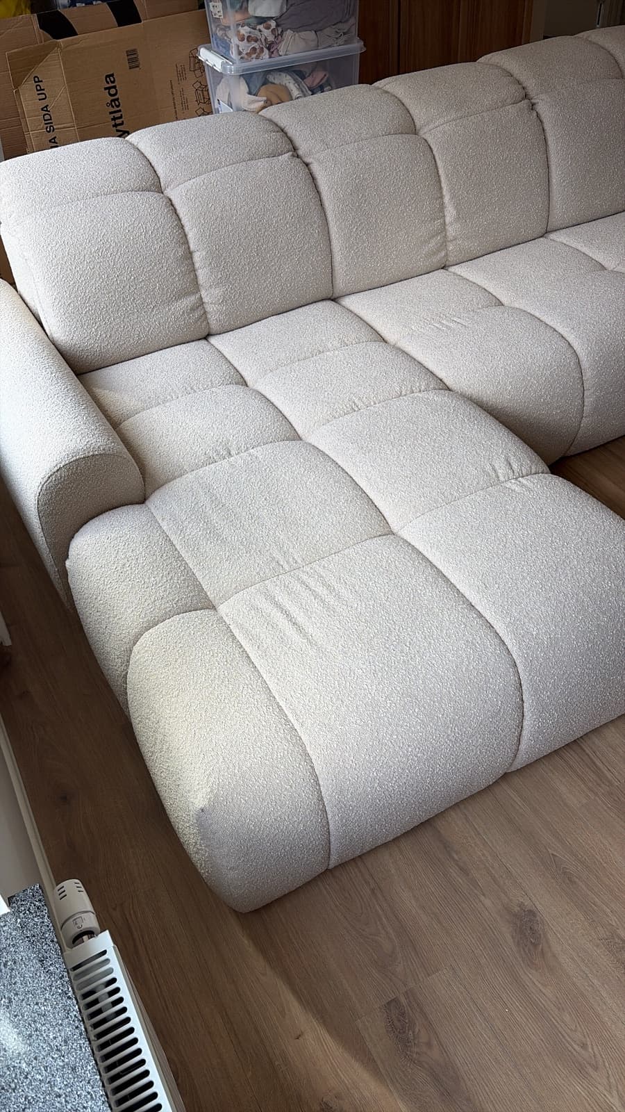 Superfin sofa! Vi valgte fargen muldvarp, så fin! Og koselig. Perfekt for filmkveldene våre.