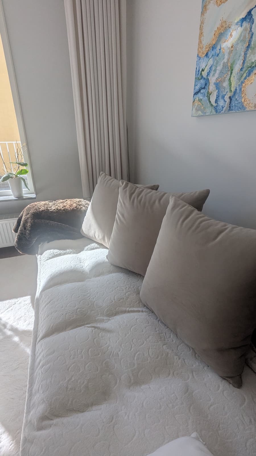 Superfornøyd med vår nye Vargen i fargen Sand 2/Salvador 2. Passer perfekt til våre beige gardiner og hvite matter i en lys leilighet mot sør. Komfortabel, solid og fleksibel som sovesofa! Blir mange filmkvelder i fremtiden og løfter hele rommet! Kjapt med levering og montering også! (Ps. Bruker et teppe på setet/armlenet som er lett å vaske, se puter for riktig farge).