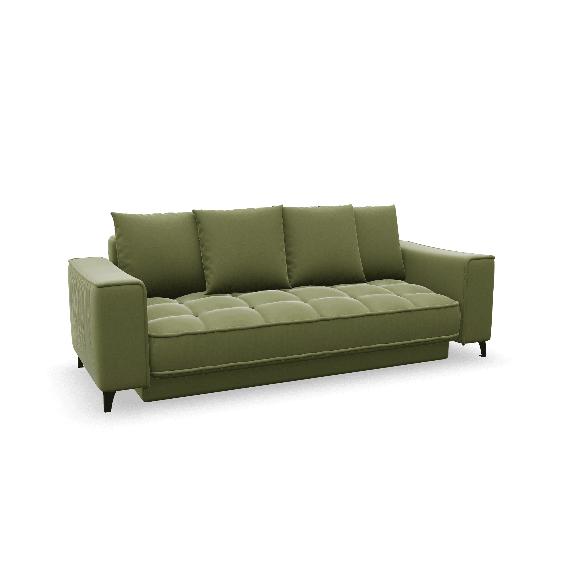 Vargen sovesofa rak løfter både stilen og komfortnivået i hjemmet ditt. Sovesofaen er en elegant skapelse i fløyel eller bouclé, med en dyptstiftet, komfortabel sitteplass som stoltserer med dekorative fjærsømmer. En rekke koselige ryggputer å synke ned i gjør skjønnheten fullkommen. Sofaen har en smidig utbrettbar funksjon med en bredde på 145 cm når trettheten melder seg, og skjuler en praktisk oppbevaringsplass under sitteplassen. Med andre ord, du kan stoppe å ule etter hjemmekos – din nye hule er klar til å flytte inn.